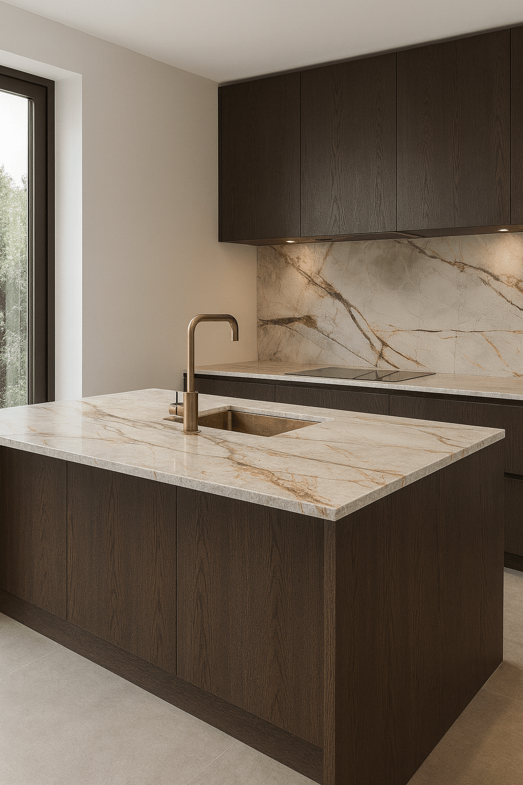 Natuursteen is een keuze voor liefhebbers van authenticiteit. Geen enkele plaat is hetzelfde: elke ader, nuance en tekening is gevormd door duizenden jaren natuur. Dit maakt een natuurstenen keukenblad niet alleen bijzonder om te zien, maar ook uniek in uitstraling.
